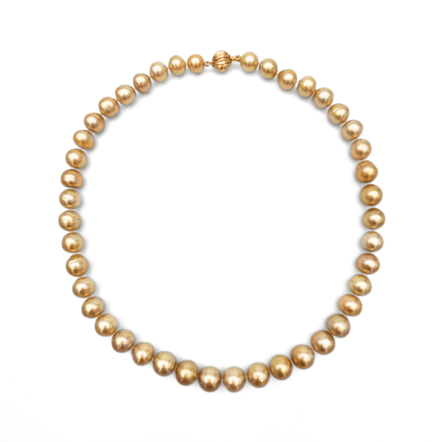 Discover elegance with our 14K Gold Golden South Sea Pearl strand. Each pearl showcases a radiant golden hue, ranging from soft champagne to deep gold, sourced from the pristine waters of the Philippines and Indonesia. Crafted with a 14K gold clasp for durability and timeless appeal, this necklace is a sophisticated addition to any jewelry collection, perfect for both formal occasions and everyday luxury.
