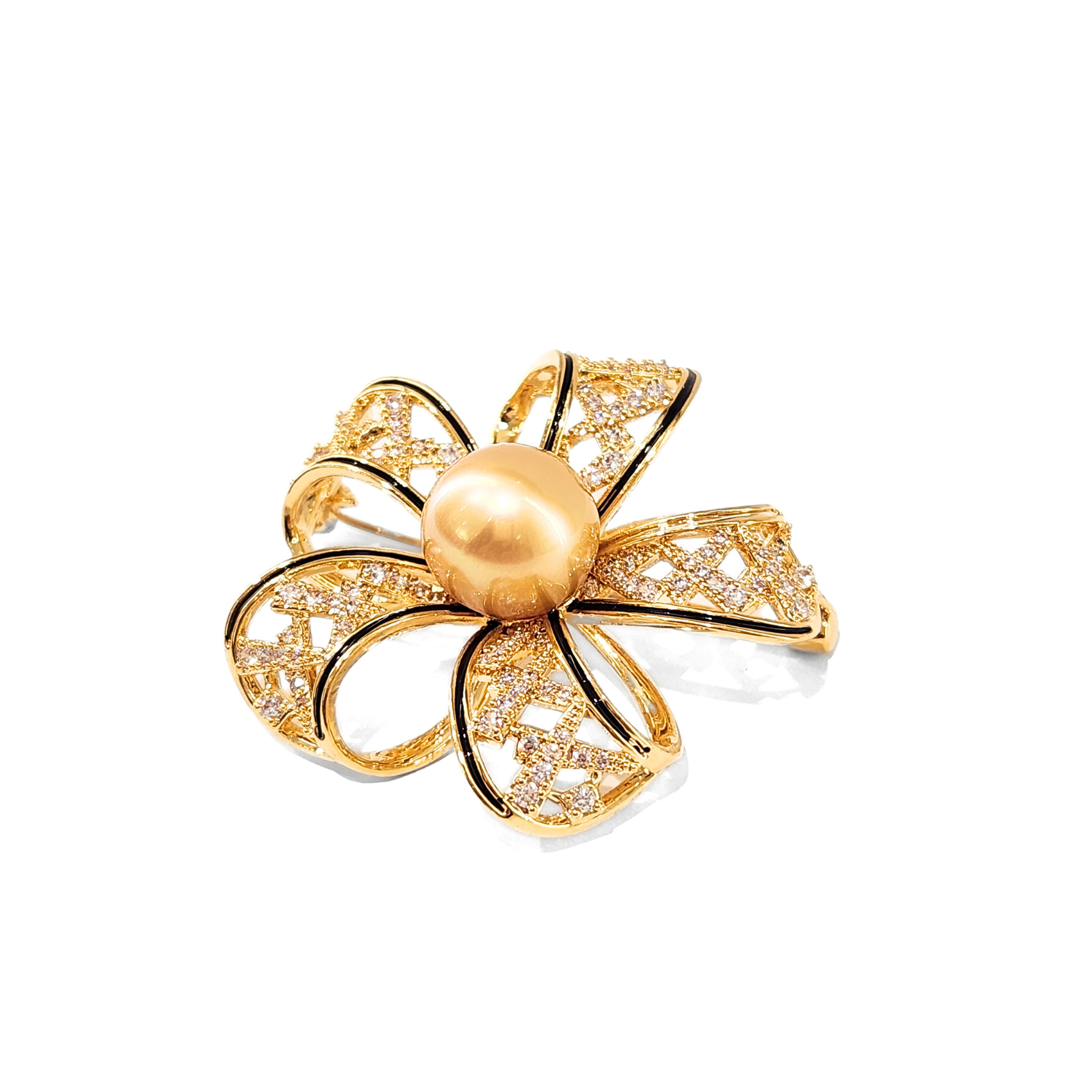 Radiate elegance and sophistication with this stunning Golden South Sea Pearl Brooch. Designed to capture the essence of natural beauty, this brooch features a lustrous South Sea golden pearl at its center, surrounded by delicately intertwined gold petals. The intricate latticework on the petals adds a touch of vintage charm, while the high-polish finish enhances the brooch’s luxurious appeal. Perfect for adding a touch of glamour to any outfit, this brooch is a timeless accessory that exudes both grace and style. Whether for a special occasion or as an heirloom piece, this brooch is a true statement of refined taste.
