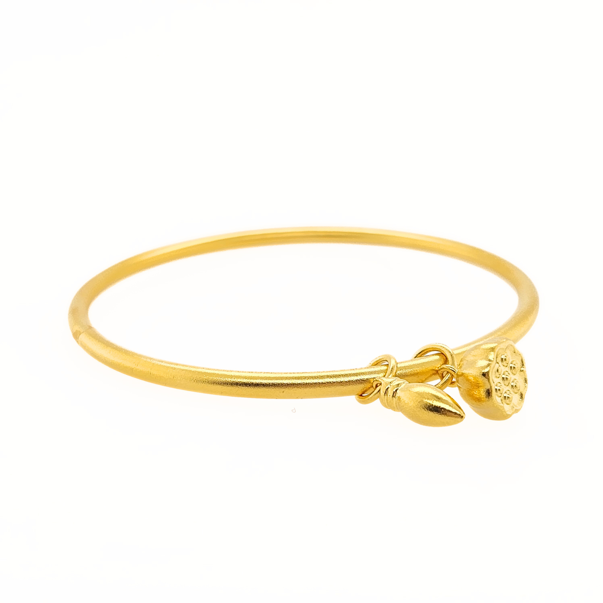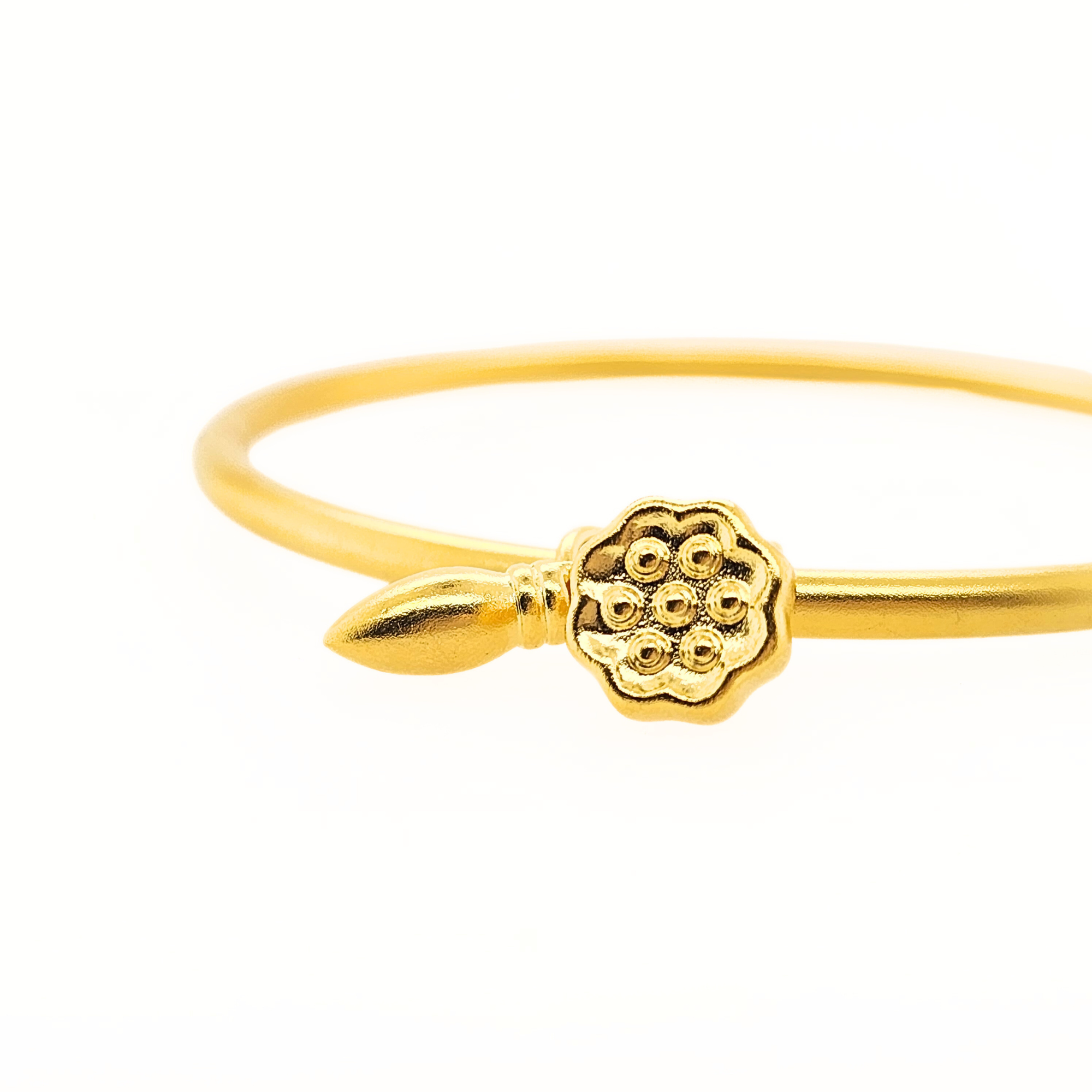 体验这款31.19克重的24K黄金古法工艺手镯,独特的才华与传统的美学完美融合。手镯上的莲花和中国毛笔魅力点缀,呈现出简约干净的设计。这款手镯彰显了华美的细节,同时又散发出纯粹的氛围。24K黄金的高贵光泽增添了它的璀璨,为您的造型注入了独特的魅力。