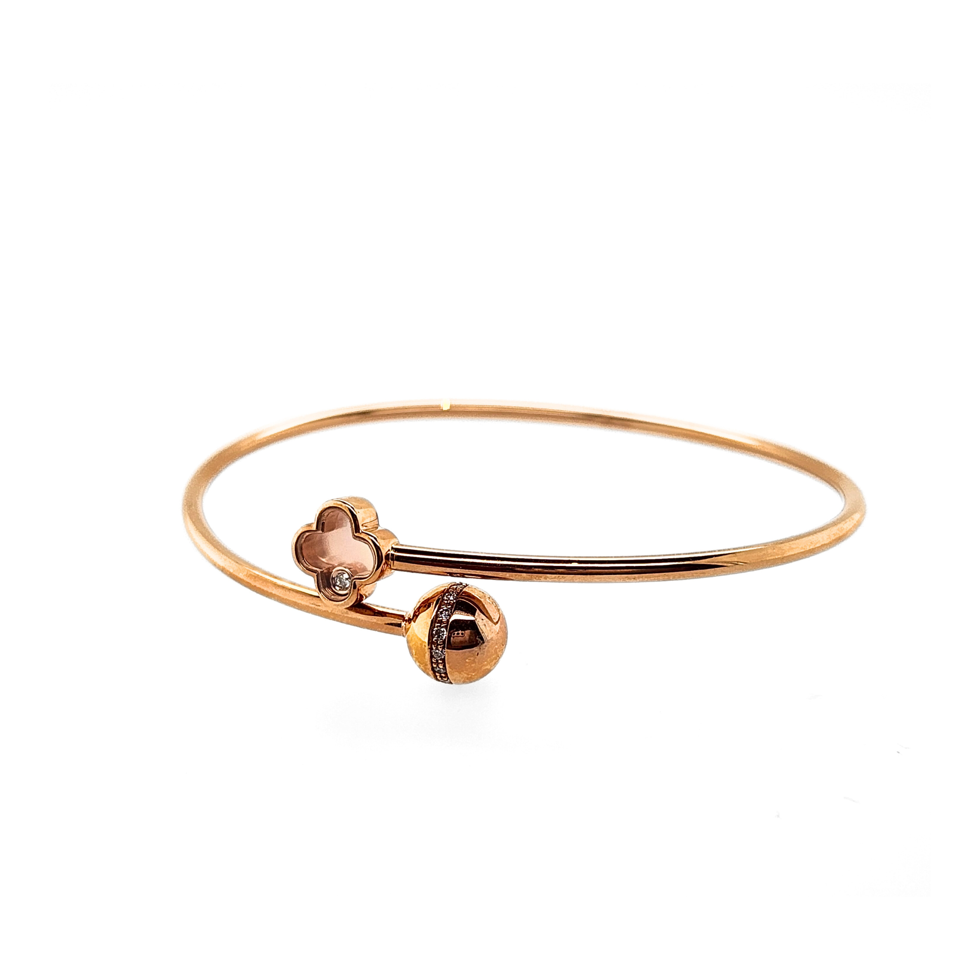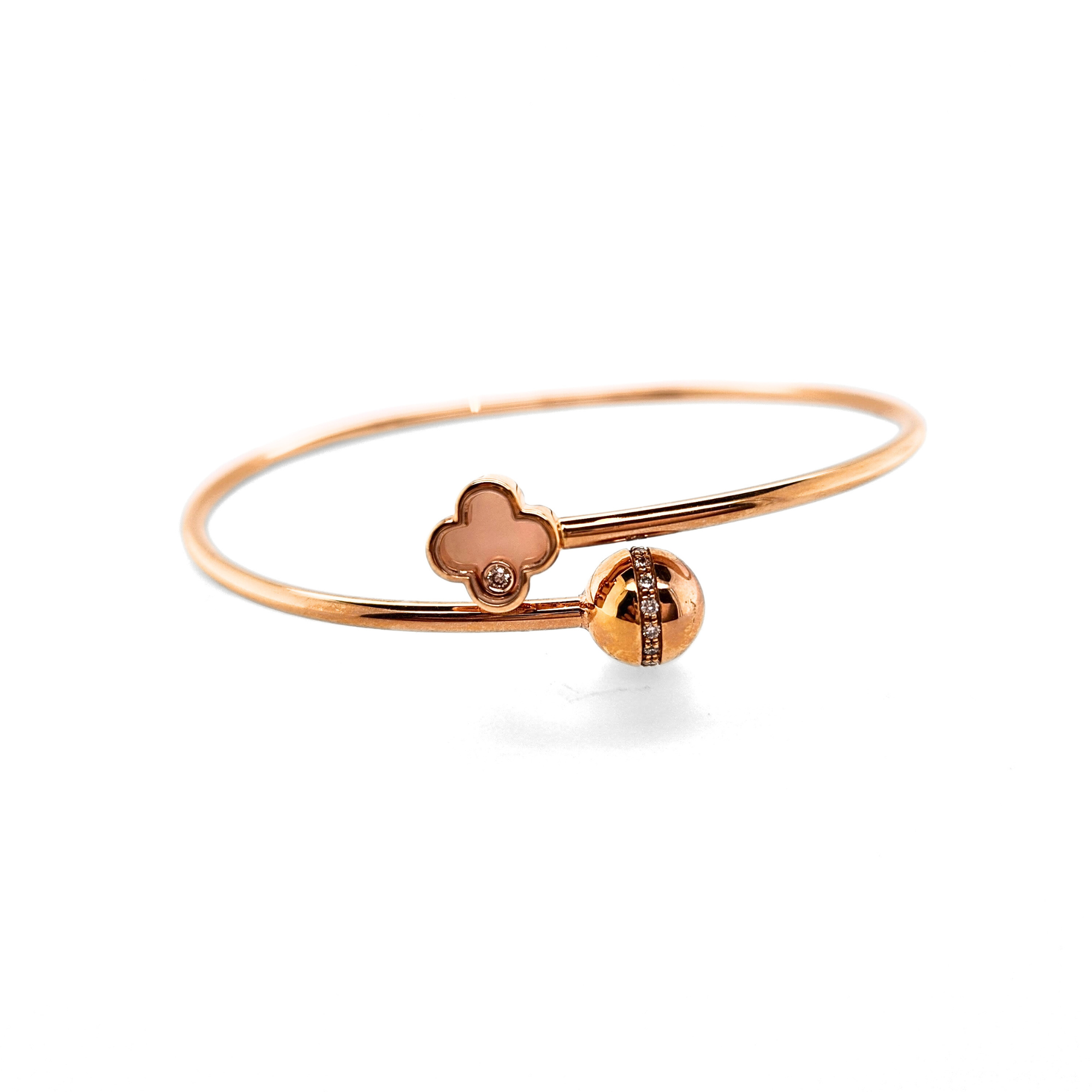 佩戴我们的18K玫瑰金手镯,饰有精巧设计的四叶草。每片叶子都象征着好运,为您的手腕增添一抹自然的优雅之美。玫瑰金的温暖色调赋予手镯浪漫的氛围,而象征好运的叶子则为您的每个动作注入一份幸运。这款手镯既有深刻的意义,又具备时尚的风格,让您的整体造型更上一层楼,散发迷人的魅力。