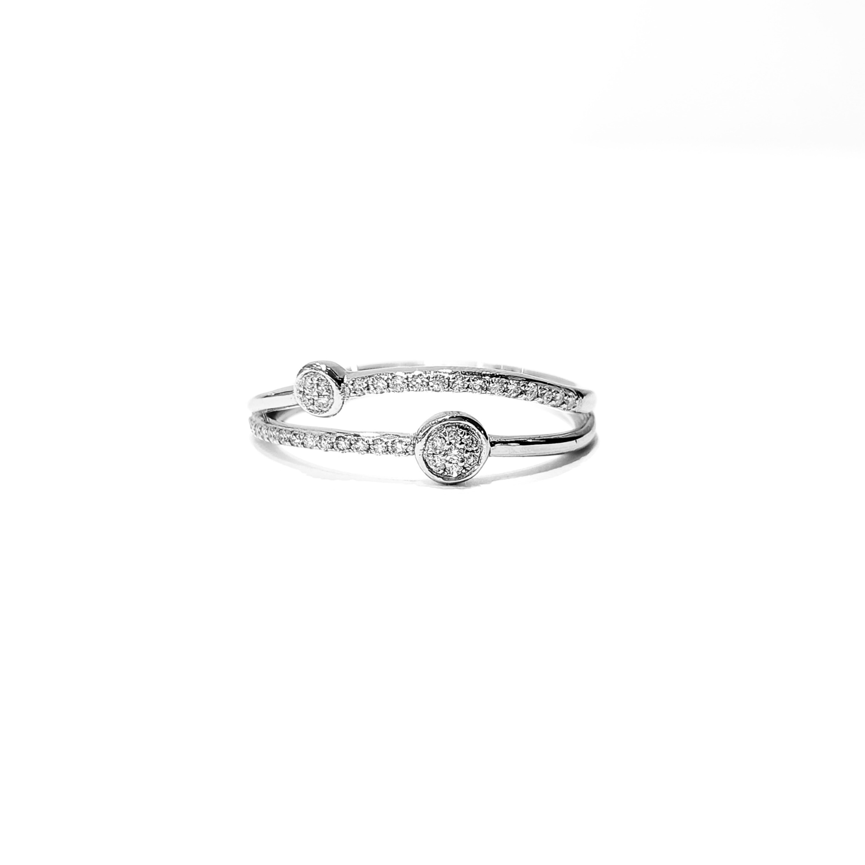 这款18K白金钻石戒指采用简约设计,钻石上点缀着两处亮点,为这枚经典之作增添了更多的优雅气息。无论是作为日常佩戴还是特殊场合,这款戒指都展现出精致典雅的风采,完美诠释了现代与经典的完美融合。